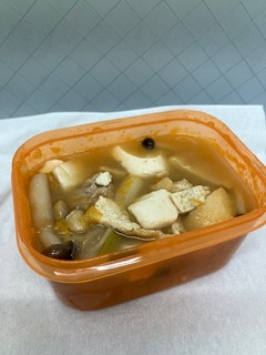 インスタントの豚汁(具はレトルトパック)を食しており