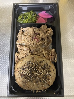 デミグラスハンバーグと焼肉弁当